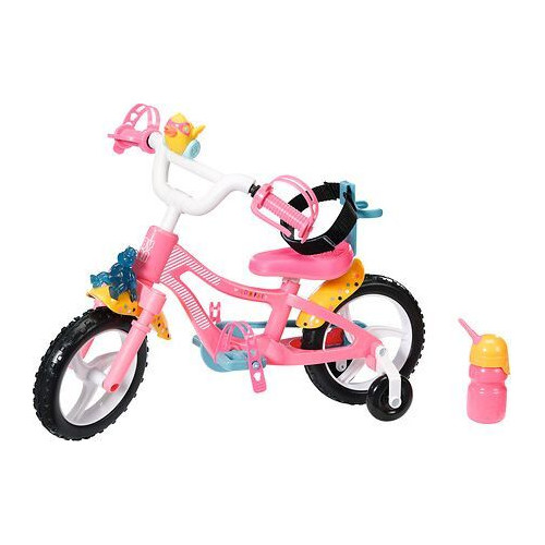 Hochwertiges Zubehör für die BABY born Markenspielpuppe. Für erweitertes, abwechslungsreiches und langanhaltendes Spielvergnügen. Auch für kleinere Puppen geeignet. BABY born Fahrrad mit Gurtsystem, Hupe und Blinklicht. Inkl. Flasche. Ab 3 Jahren.