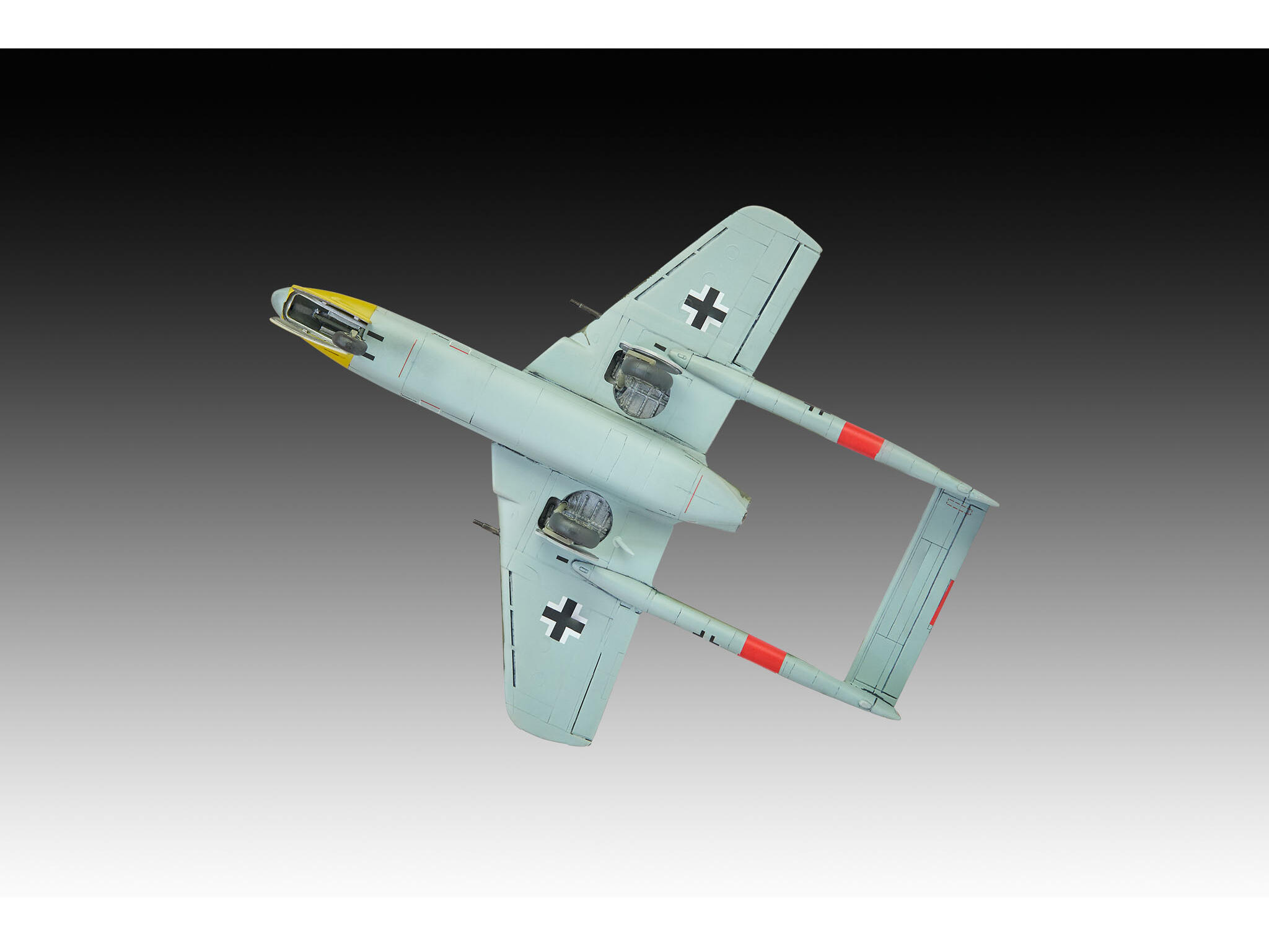 Unter der Projektbezeichnung “Entwurf VI” entwickelte Focke-Wulf gegen Ende des Zweiten Weltkriegs diesen einstrahligen Jäger. Ziel war es, die Defizite der Me 262 (wie die langen Start- und Landestrecken) zu beheben. Der “Flitzer” sollte dank seiner Auslegung auch von kürzeren Pisten operieren können. Obwohl detaillierte Pläne und Windkanalmodelle existierten, wurde das Projekt zugunsten anderer Entwicklungen gestoppt, bevor ein flugfähiger Prototyp fertiggestellt werden konnte. Mit diesem Modell erweckst du die Pläne der Ingenieure zum Leben.