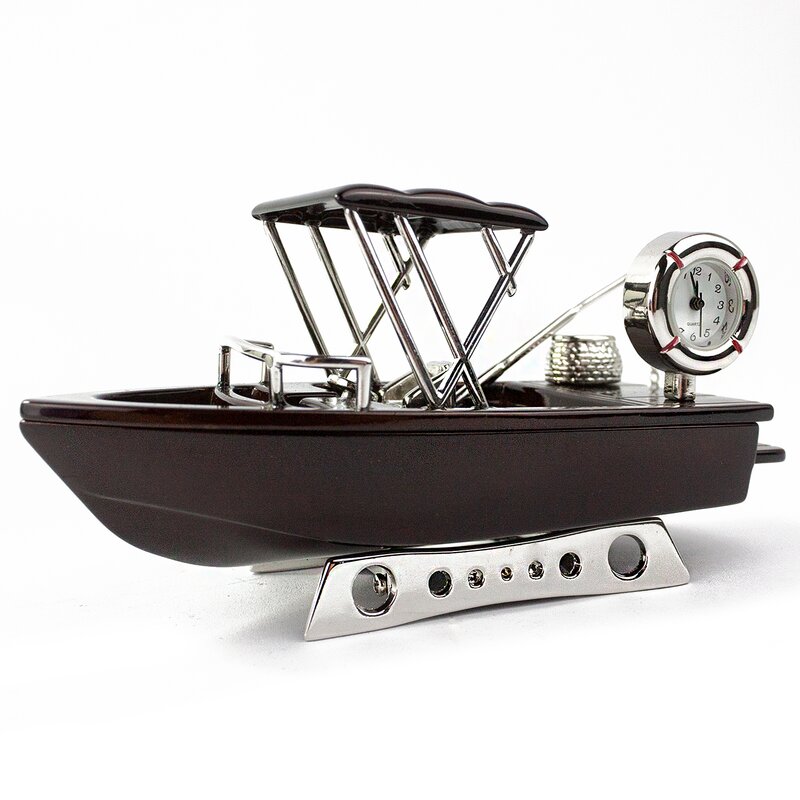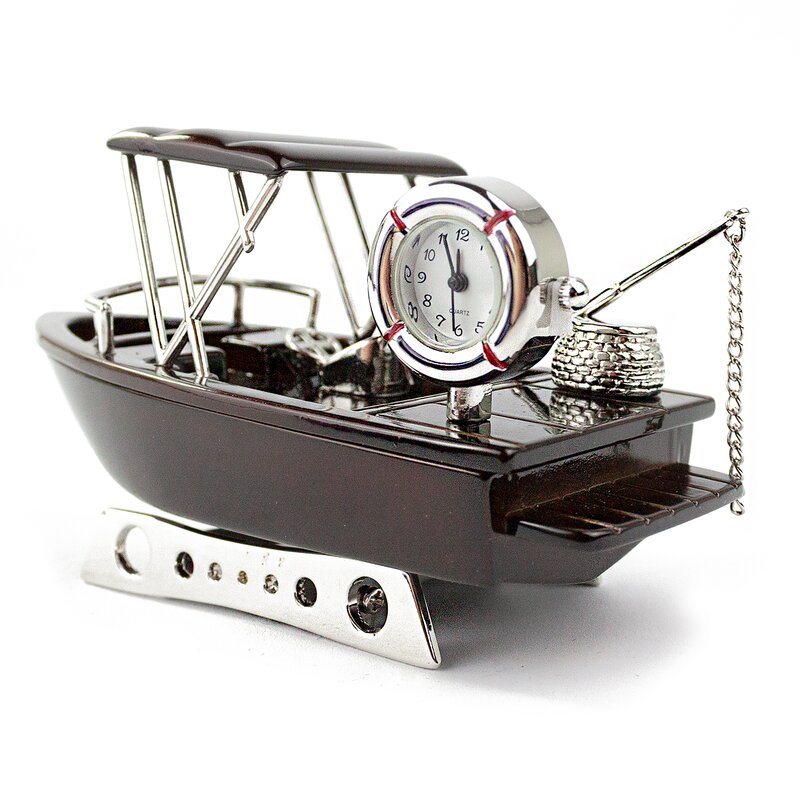 Metall Tischuhr Boot Angelboot schwarz Schreibtischuhr – Siva Clocks 99034