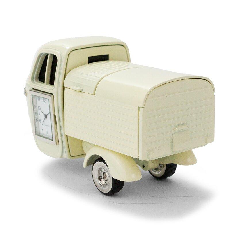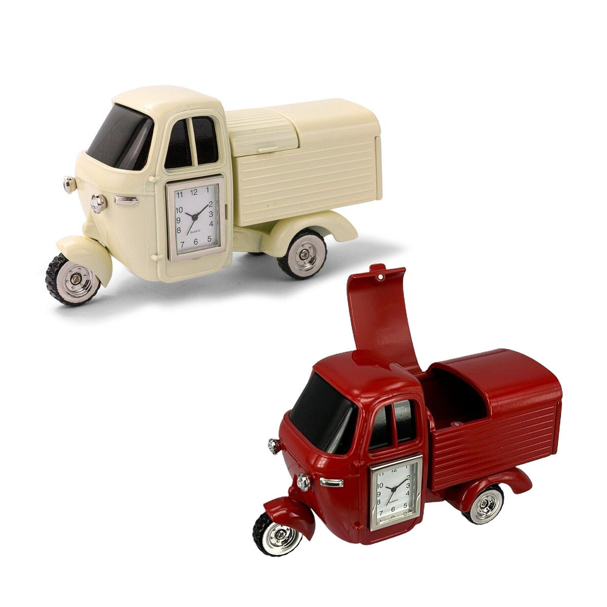 Metall Tischuhr dreirädriger Roller Arpe beige / rot Schreibtischuhr – Siva Clocks 99084 / 99086