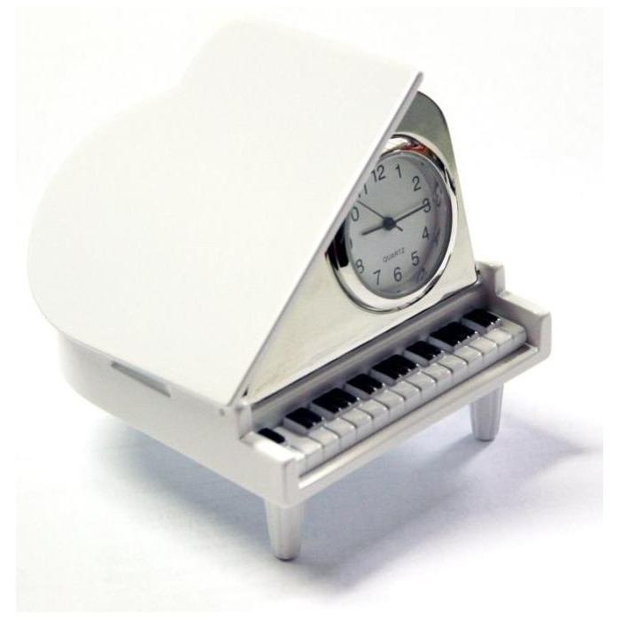 Metall Tischuhr Piano Weiß Flügel Klavier Schreibtischuhr – Siva Clocks 99032