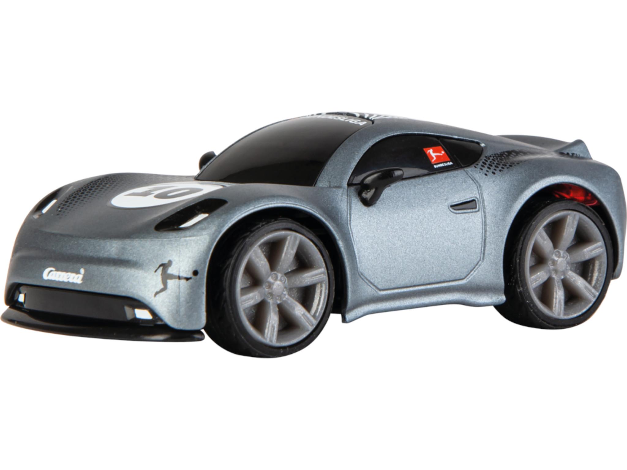 Dank der offiziellen Bundesliga™-Lizenz kannst du deine Fahrzeuge und Bande mit Stickern von 24 Clubs gestalten – egal ob du Fan vom FC Bayern, Dortmund, St. Pauli oder einem Aufsteiger bist. Mit der einfach zu bedienenden 2,4 GHz-Technologie lassen sich bis zu 16 Fahrzeuge gleichzeitig steuern. So werden spontane Matches mit Geschwistern oder Freund:innen zum echten Highlight.